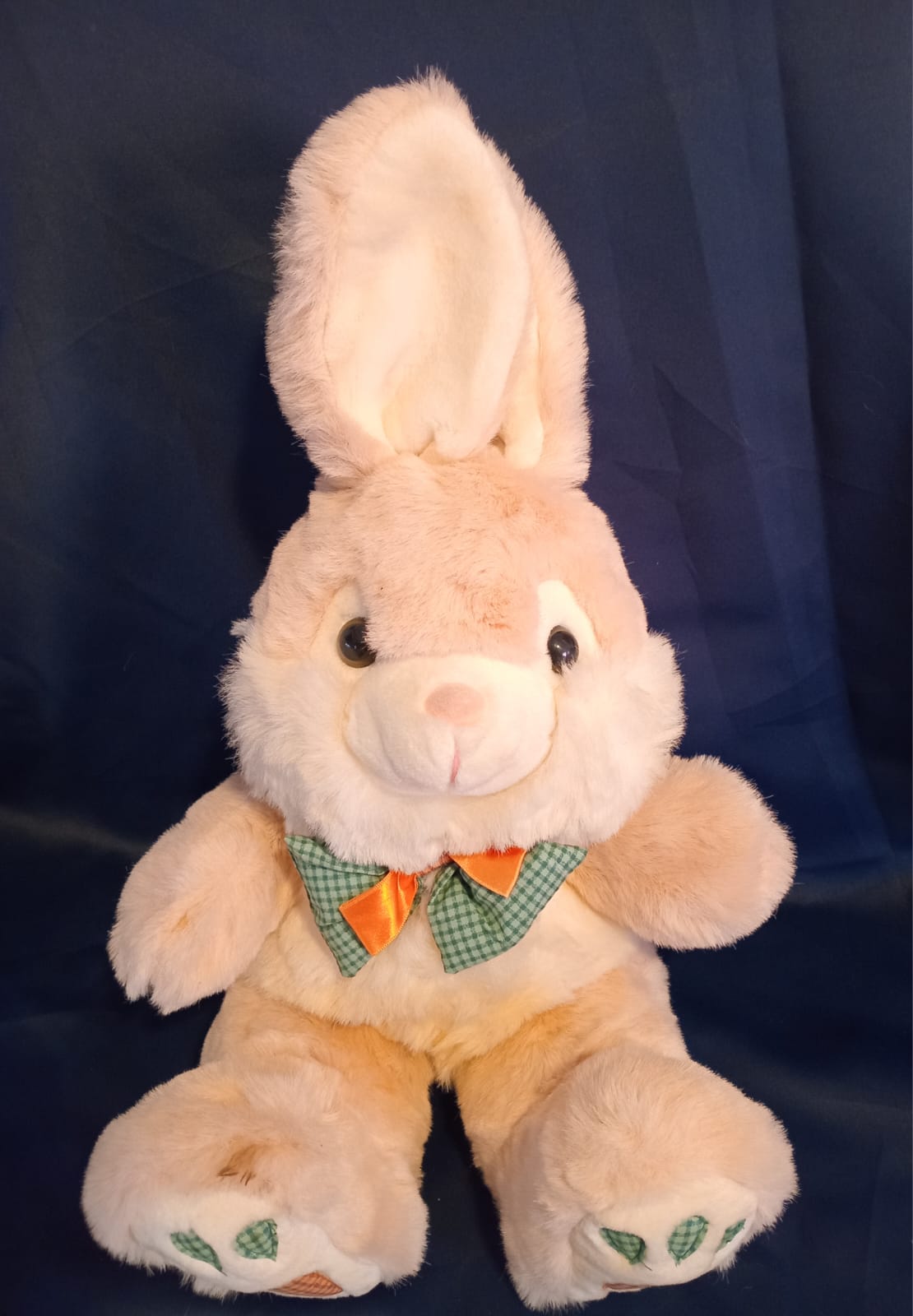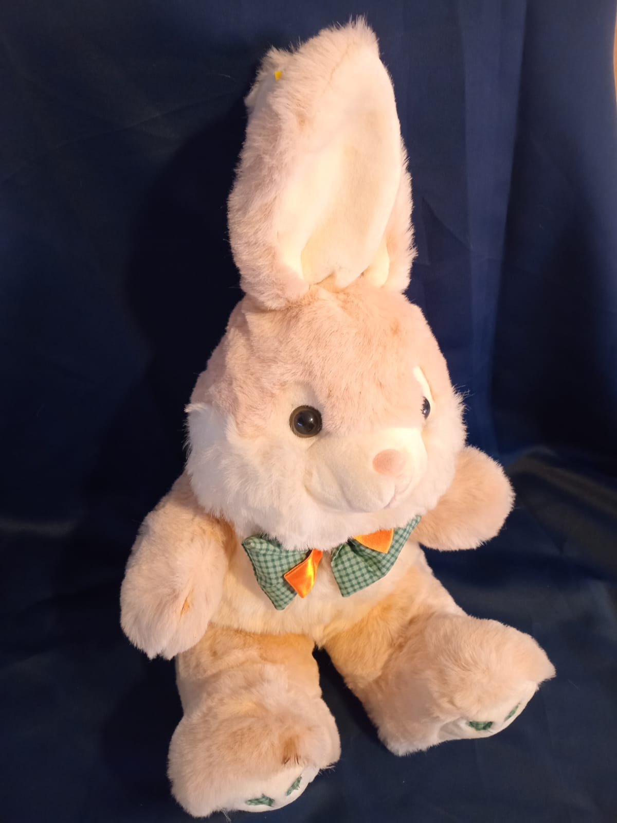 • Peluche tipo animal. Hermosa coneja con detalles de huellas de zanahoria. ¡Llamativa y muy tierna! 🤩. De segunda mano (excelente estado)